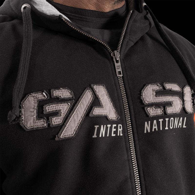 The hood is lined with a thermal waffle fabric in contrast colour and is loaded with trick details like the felt GASP logo on the chest and arm, GASP symbol on the rear of the hood and 2x2 ribbed details too.